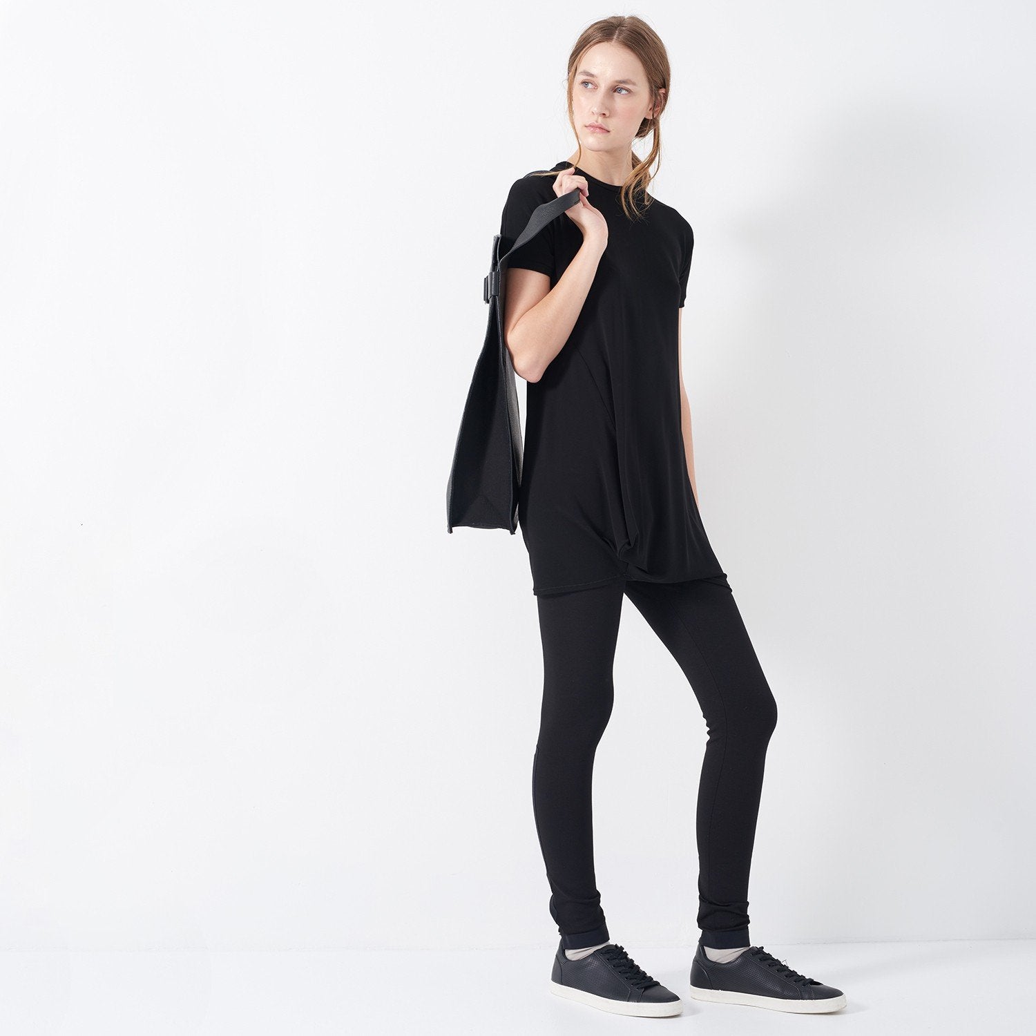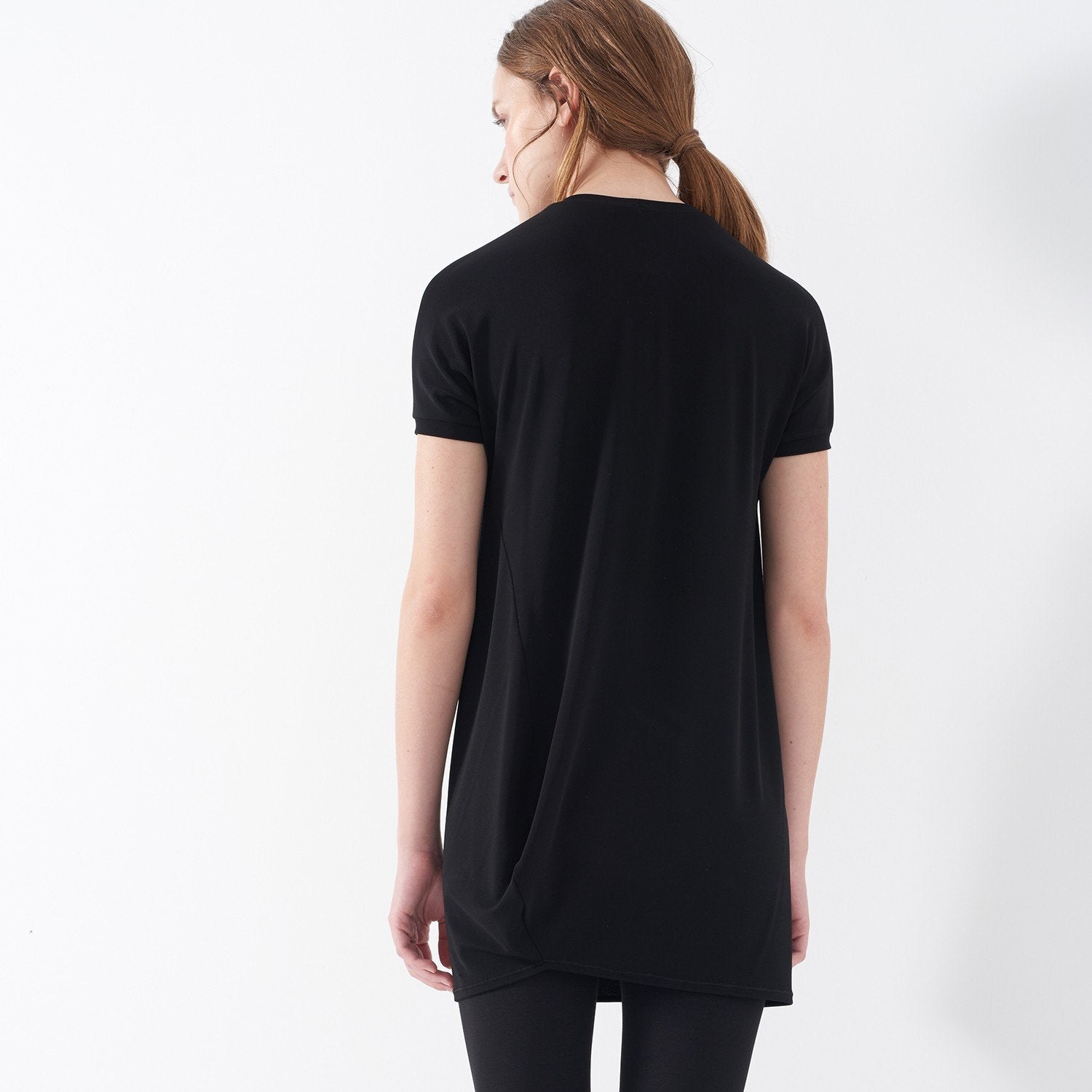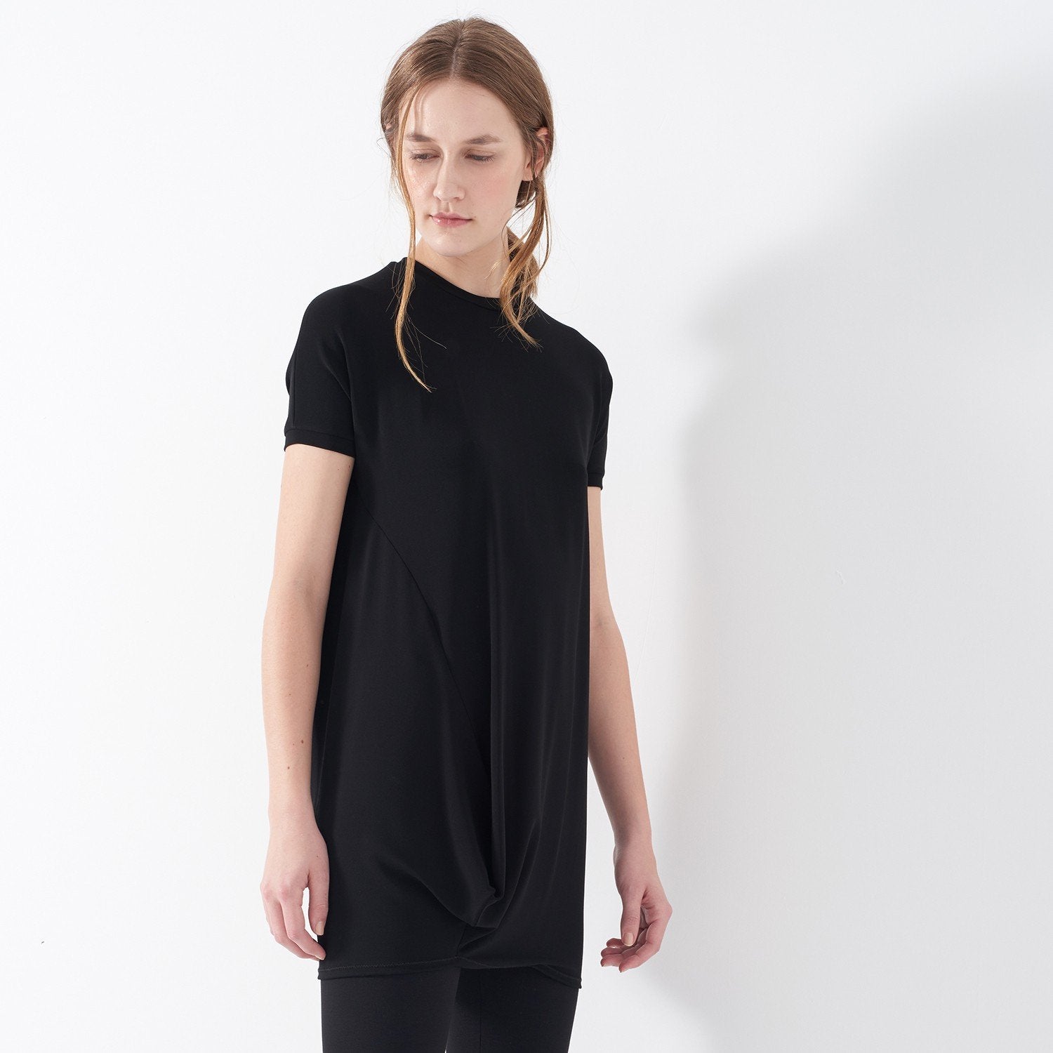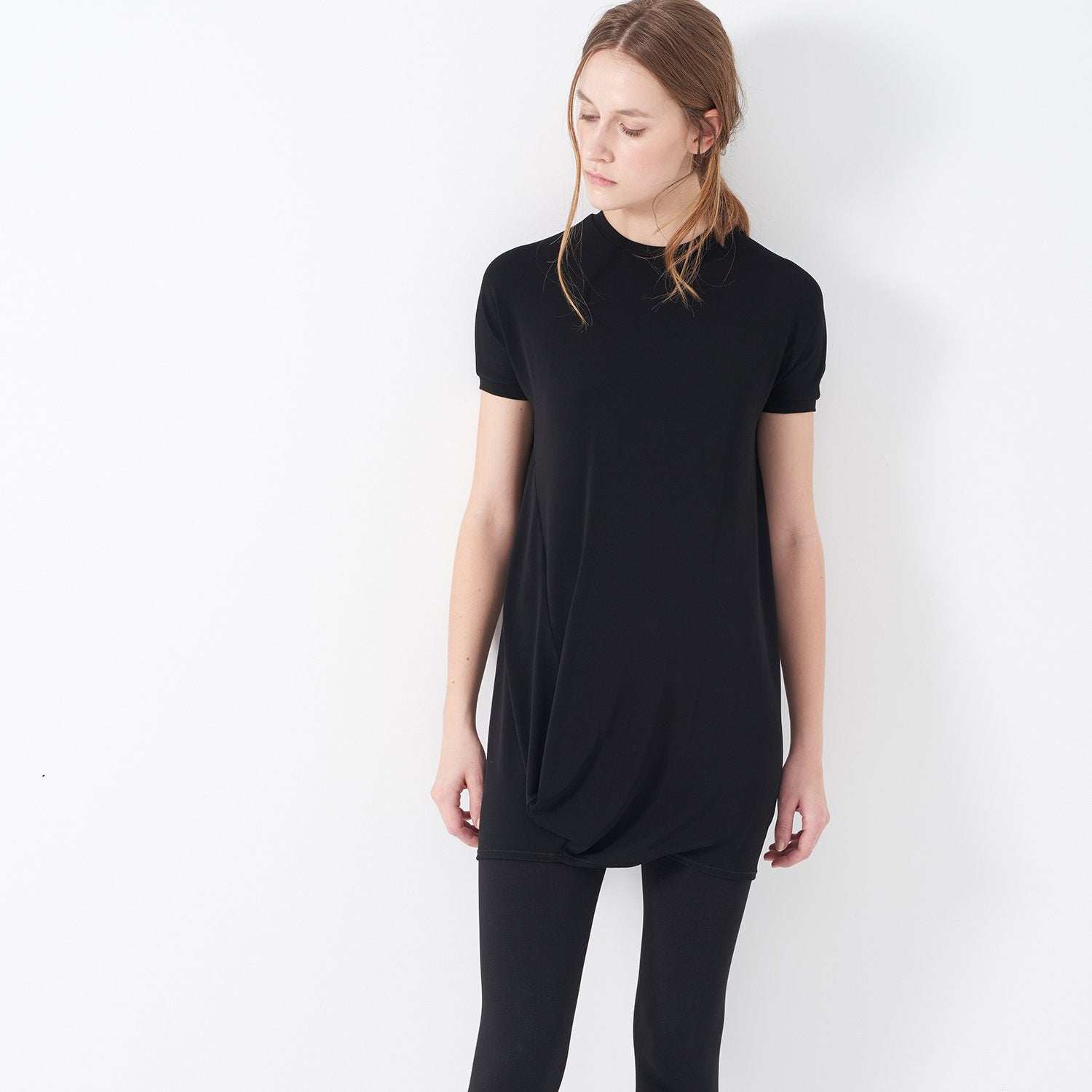 La tunique SCRUGGS est confectionnée en jersey crêpe léger, offrant un confort raffiné. Dotée d'un col ras du cou et de manches t-shirt, elle allie simplicité et subtils détails de volume décalés pour une silhouette moderne. De coupe standard et ample, cette tunique s'enfile facilement, ce qui en fait un choix élégant pour un style polyvalent.